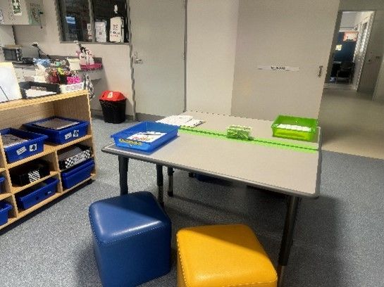 Classrooms are set out with clearly defined areas which may include spaces such as: